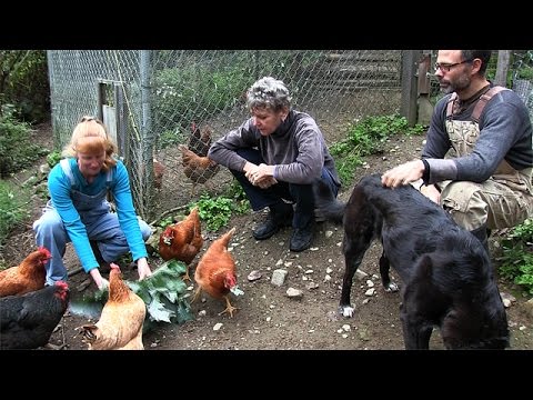 "Chickens are naturally forest birds." A tour of Gord and Ann Baird's edible landscape starts at the off-grid chicken house and yard, containing fruit trees that provide a protective canopy against flying predators. Roof rainwater becomes drinking water for the chickens, whose “rototilling” has prepared land now being planted in grains — for themselves and people. Don't miss Hannah Hen catching a berry in mid-air! Then visit a Hobbit-ish above-ground root cellar built of cob, where cheeses, vegetables, and beer stay cool and dry. Then on to a shipping container shed whose sunny living roof produces a bounty of winter squashes. The roof's nutrient-rich rainwater is caught in a barrel, then used as compost tea (fertilizer) for other plants. "It's all connected," says Ann. "We're connected to the chickens, and they and we are connected to the land…. The biodiversity here is actually increasing.” Episode 289. [www.eco-sense.ca, ecosenseliving.wordpress.com] Coming in part 2: Nook and cranny gardens that optimize micro-climates, plus a heat-storing cob-sided greenhouse. Tour Ann and Gord's EcoSense House - Natural Building, Natural Living (episode 230), http://bit.ly/1KytrQc Thanks for being in the Peak Moment viewer community! Subscribe to peakmoment channel on YouTube for more great shows on grass roots pioneers forging a post-growth culture. Subscribe to email news or donate at http://bit.ly/1wR12Rz. Visit Peak Moment on: Facebook: http://on.fb.me/1yuzHQB GooglePlus: http://bit.ly/1wR12RA Janaia on Facebook: http://on.fb.me/1yuzHQF Twitter: https://twitter.com/PeakMomentTV (handle: @peakmomenttv) iTunes: http://apple.co/1yuzJrF